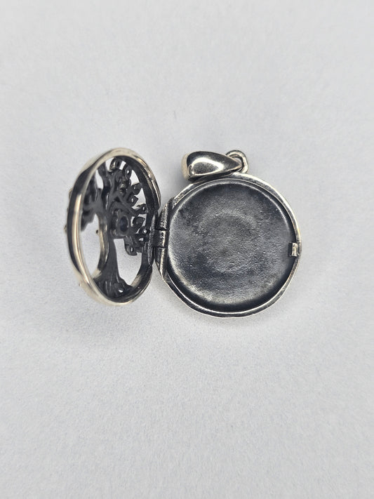 Tree of Life Photo Locket in 925 Sterling Silver with Blue Zircon