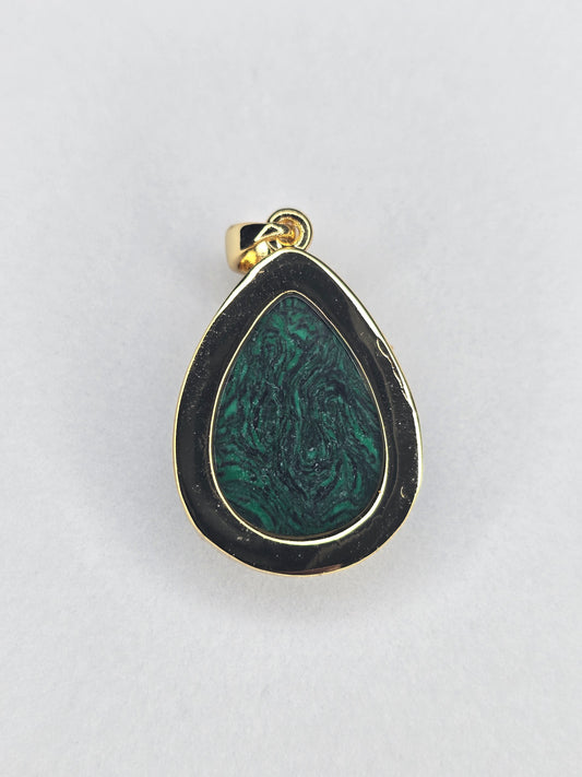 Tree of Life Pendant 925 Sterling Silver 18K Gold Plated Malachite Teardrop