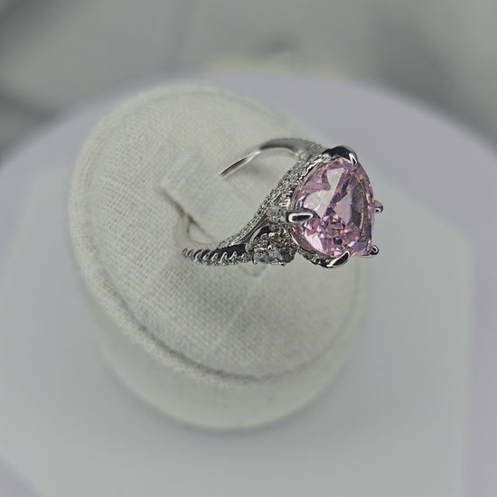 Pink Heart Moissanite Engagement Ring in 925 Sterling Silver